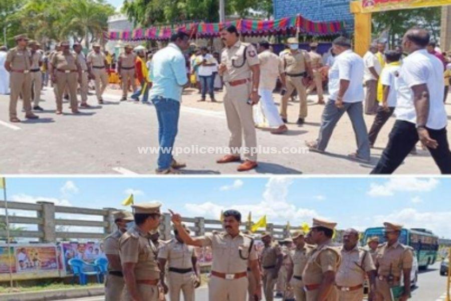 தூத்துக்குடி : தூத்துக்குடி மாவட்டத்தில், வீரபாண்டிய கட்டபொம்மன் அவர்களின் 223வது நினைவு நாளை முன்னிட்டு மாவட்ட காவல் கண்காணிப்பாளர் டாக்டர் திரு. எல். பாலாஜி சரவணன், அவர்கள் தலைமையில் 4 காவல் துணை கண்காணிப்பாளர்கள், 18 காவல் ஆய்வாளர்கள், 41 உதவி ஆய்வாளர்கள் உட்பட சுமார் 300 போலீசார் பாதுகாப்பு பணியில் ஈடுபட்டு வருகின்றனர். மேற்படி பாதுகாப்பு பணிகளை மாவட்ட காவல் கண்காணிப்பாளர் டாக்டர் திரு எல் பாலாஜி சரவணன் அவர்கள் (16.10.2022) கயத்தாறு பகுதியில் உள்ள வீரபாண்டிய கட்டபொம்மன் அவர்களின் மணிமண்டபத்திற்கு நேரில் சென்று ஆய்வு செய்தார். இந்நிகழ்வின்போது கோவில்பட்டி காவல் துணை கண்காணிப்பாளர் திரு. வெங்கடேஷ், நில அபகரிப்பு தடுப்பு சிறப்பு பிரிவு காவல் துணை கண்காணிப்பாளர் திரு. சம்பத், கயத்தாறு காவல் நிலைய ஆய்வாளர் திரு. முத்து, தனிப்பிரிவு உதவி ஆய்வாளர் திரு. ஸ்டீபன் மற்றும் போலீசார் உடனிருந்தனர்.