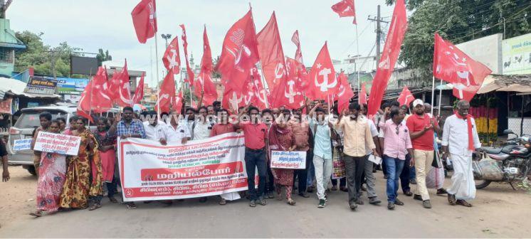 திருவள்ளூர் : பொன்னேரியில் தமிழ்நாட்டிற்கு பட்ஜெட்டில் நிதி ஒதுக்காத மத்திய அரசை கண்டித்து கம்யூனிஸ்ட் கட்சிகள் சார்பில் அஞ்சல் அலுவலகத்தை முற்றுகையிட்டு சாலை மறியல் போராட்டம். அண்மையில் தாக்கல் செய்த பட்ஜெட்டில் தமிழ்நாட்டிற்கு முறையான திட்டங்களையும் நிதி ஒதுக்காத மத்திய அரசுக்கு கண்டனம். காவல்துறைக்கும் போராட்டக்காரர்களுக்கும் இடையே கடும் தள்ளுமுள்ளு வாக்குவாதம். மறியலில் ஈடுபட்ட 200க்கும் மேற்பட்டோர் கைது அண்மையில் நாடாளுமன்றத்தில் மத்திய அரசு தாக்கல் செய்த பட்ஜெட்டில் தமிழ்நாட்டிற்கு முறையாக நிதி ஒதுக்கப்படவில்லை என்று குற்றம் சாட்டி பல்வேறு கட்சிகள் சார்பில் போராட்டங்கள் நடைபெற்று வருகின்றன. இதன் ஒரு பகுதியாக திருவள்ளூர் மாவட்டம் பொன்னேரியில் இடதுசாரி அமைப்புகளான இந்திய கம்யூனிஸ்ட் கட்சி, மார்க்சிஸ்ட் கம்யூனிஸ்ட் கட்சி, லெனிநிஸ்ட் கம்யூனிஸ்ட் கட்சி சார்பில் 200க்கும் மேற்பட்டோர் மத்திய அரசை கண்டித்து பழைய பேருந்து நிலையத்தில் இருந்து பேரணியாக வந்து அஞ்சல் அலுவலகத்தை முற்றுகையிட்டு போராட்டத்தில் ஈடுபட்டனர்.