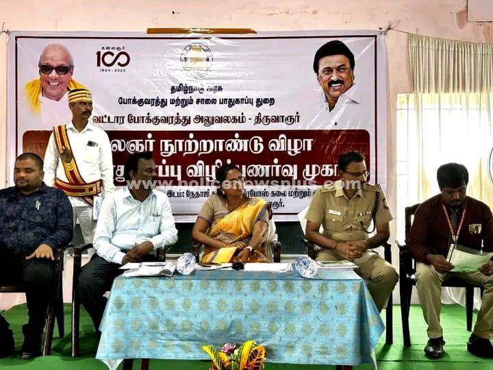 திருவாரூர் : திருவாரூரில் கலைஞர் நூற்றாண்டு விழாவை முன்னிட்டு வட்டாரப் போக்குவரத்து மற்றும் சாலை பாதுகாப்பு விழிப்புணர்வு முகாம் திருவாரூர் நேதாஜி சுபாஷ் சந்திரபோஸ் கல்லூரியில் நடைபெற்றது. இந்நிகழ்ச்சியில் நேதாஜி கல்லூரியின் இயக்குனர் விஜய சுந்தரம் வரவேற்பு உரையாற்றினார். சிறப்பு விருந்தினராக திருவாரூர் மாவட்ட ஆட்சித் தலைவர் திருமதி தி . சாரு ஸ்ரீ அவர்கள். திருவாரூர் மாவட்ட காவல் கண்காணிப்பாளர் எஸ் ஜெயக்குமார் எம்.எஸ்.சி அவர்கள், சிறப்பு விருந்தினராக கலந்து கொண்டனர். திரு கா. பழனிச்சாமி வட்டார போக்குவரத்து அலுவலர் முன்னிலை வகித்தார். நேதாஜி கல்லூரியின் தாளாளர் வெங்கட்ராஜுலு நன்றி தெரிவித்தார்.