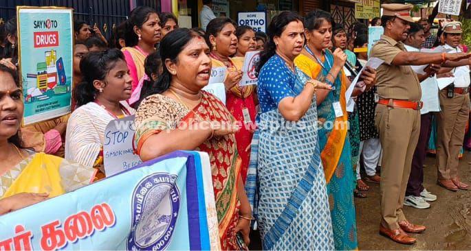 சென்னை : சென்னை கொளத்தூர் அருள்மிகு கபாலீஸ்வரர் கலை மற்றும் அறிவியல் கல்லூரி மாணவ மாணவிகள் போதை ஒழிப்பு விழிப்புணர்வு பதாகைகள் ஏந்தி போதை ஒழிப்பு உறுதிமொழி எடுத்துக் கொண்டனர். நிர்வாக மற்றும் ஆசிரியர்கள்மற்றும் காவல் துறையினர் கலந்து கொண்டனர்.