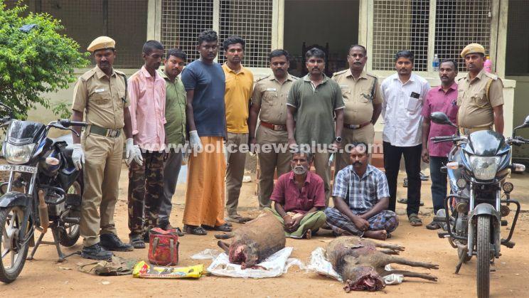 திண்டுக்கல்: திண்டுக்கல் மாவட்டம், ஒட்டன்சத்திரம் வனச்சரகத்திற்கு உட்பட்ட சத்திரப்பட்டி அருகே உள்ள வீரலப்பட்டி பகுதியில் வனத்துறையினர் இரவு ரோந்து பணியில் ஈடுபட்டிருந்த போது நாட்டு வெடிகுண்டுகளை வைத்து இரண்டு காட்டு பன்றிகளை வேட்டையாடிய வீரலப்பட்டி பகுதியைச் சேர்ந்த முத்து விஜயன் மற்றும் அம்பிளிக்கை பகுதியை சேர்ந்த செல்வராஜ் பிடித்து விசாரணை செய்தனர். விசாரணையின் போது பிடிபட்டவர்கள் அளித்த வாக்குமூலத்தின் படி வனதுறையினரை கண்டு தப்பி ஓடிய வீரலப்பட்டி பகுதியைச் சேர்ந்த சிவா என்பவரை தேடி வருகின்றனர். மேலும் இந்த வழக்கில் திண்டுக்கல் தாடிக்கொம்பு அருகே உள்ள அகரம் பகுதியைச் சேர்ந்த கணேசன் என்பவரையும் கைது செய்தனர்.