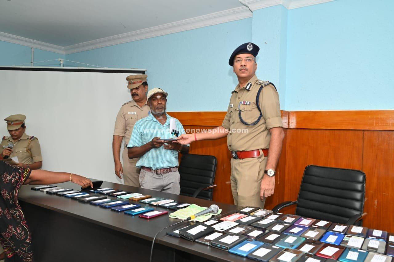 திருநெல்வேலி : திருநெல்வேலி மாநகர காவல் அலுவலகத்தில் சைபர் கிரைம் காவல் நிலையம் செய்யப்பட்டு வருகிறது. திருநெல்வேலி மாநகர காவல் ஆணையாளர் திரு.சந்தோஷ் குமார் இ.கா.ப. அவர்களின் உத்தரவின் பெரில், நெல்லை மாநகர காவல் துணை ஆணையாளர் மேற்கு திரு.K.சுரேஷ்குமார அவர்கள் மேற்பார்வையில் சைபர் கிரைம் காவல் ஆய்வாளர் திருமதி.சண்முகவடிவு அவர்கள் தலைமையில், உதவி ஆய்வாளர்கள் திரு.நடராஜன் அவர்கள், திருமதி.வித்யாலட்சுமி அவர்கள், திருமதி கலைசந்தான மாரி அவர்கள், காவல் தொழில்நுட்ப உதவி ஆய்வாளர் திரு.ஜெயபிரகாஷ் மற்றும் காவல் ஆளினர்கள் திருநெல்வேலி மாநகரத்தில் கைப்பேசி காணாமல் போனதாக பெறபட்ட புகார்களில் ரூ.20,12,200/- மதிப்புள்ள 104 கைபேசிகள் கைப்பற்றப்பட்டு 08-06-2022 தேதி இன்று திருநெல்வேலி மாநகர ஆணையாளர் திரு.சந்தோஷ்குமார் இ.கா.ப அவர்கள் உரியவர்களிடம் ஒப்படைத்தார்கள்.