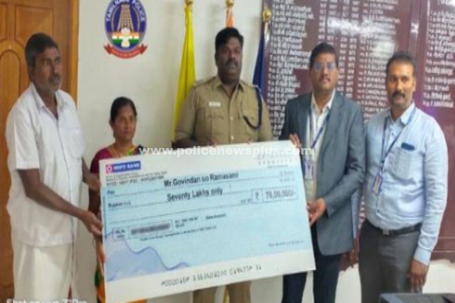 HDFC வங்கியிலிருந்து #விபத்து_காப்பீடு தொகையான ரூ,70,00000-/- (எழுபது லட்சம் ) பணத்தை தருமபுரி மாவட்ட காவல் கண்காணிப்பாளர் திரு.சி..கலைச்செல்வன்.இ.கா.ப., அவர்கள் முன்னிலையில் இறந்த பயிற்சி காவலரின் குடுப்பத்திற்கு வழங்கபட்டுள்ளது. காப்பீட்டு தொகையை பெற்றுத்தந்த HDFC-வங்கி மேலாளர் மற்றும் ஊழியர்களுக்கு காவல்துறை சார்பில் நன்றியை தெரிவித்துக் கொள்ளப்படுகிறது