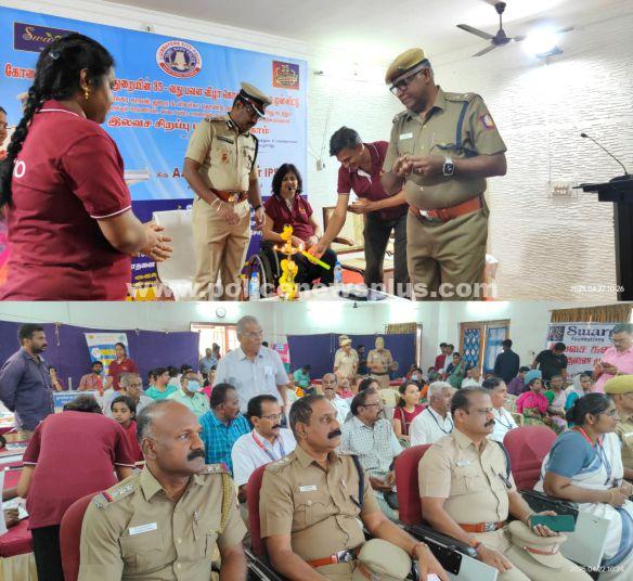 கோவை: கோவை மாநகர காவல்துறையும் மற்றும் ஸ்வர்கா தன்னார்வ தொண்டு நிறுவனமும் இணைந்து சிறப்பு மருத்துவ முகாமை காவலர்கள், ஓய்வு பெற்ற காவலர்கள் மற்றும் அவர்கள் குடும்ப உறுப்பினர்கள் பயன்பெறும் வகையில் இந்த முகாமை கோவை மாநகர காவல் ஆணையர் சரவண சுந்தர் விளக்கேற்றி துவக்கி வைத்தார். ஸ்வர்கா தன்னார்வ தொண்டு நிறுவனத்தின் ஸ்வர்ண அவர்கள் உடன் இணைந்து சிறப்பு மருத்துவ முகாமை துவக்கி வைத்தார்.
