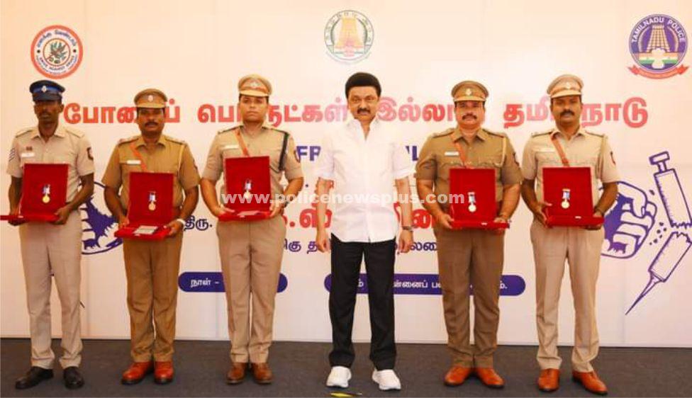 சென்னை: தமிழ்நாட்டின் தலைநகரில் சென்னைப் பல்கலைக்கழகத்தில் காவல்துறை சார்பில் நடைபெற்ற “போதைப் பொருட்கள் இல்லாத தமிழ்நாடு” நிகழ்ச்சியில், தமிழ்நாட்டில் போதைப் பொருள் உற்பத்தி மற்றும் சட்டவிரோதக் கடத்தலை ஒழிப்பதில் திறம்பட பணியாற்றிய காவல்துறை அலுவலர்கள் மற்றும் காவல் ஆளிநர்களுக்கு 2024ஆம் ஆண்டிற்கான தமிழ்நாட்டின் முதலமைச்சர் மு க ஸ்டாலின் அவர்கள் காவலர்களுக்கு சிறப்பு பதக்கங்களை வழங்கி கெளரவித்தார்.