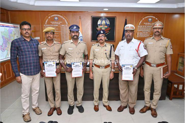 மதுரை: மதுரை மாநகர், திருப்பரங்குன்றம் மேம்பாலத்தின் மீது, வங்கியில் வாங்கிய கடனை திருப்பி செலுத்த இயலாமல் அதிக கடன் பிரச்சினையால் மேம்பாலத்தில் இருந்து இருப்புப் பாதையில் ரயில் முன் விழுந்து தற்கொலை செய்து கொள்ள முயன்ற மதுரை நிலையூரைச் சேர்ந்த கணேசன் என்பவரது மகன் குட்டி கமல்(27) . என்பவரை, கவனித்த திருப்பரங்குன்றம் போக்குவரத்து பிரிவு சிறப்பு சார்பு ஆய்வாளர் ரமேஷ் மற்றும் மாட்டுத்தாவணி காவல் நிலைய முதல் நிலைக்காவலர் அய்யனார்செல்வம் மற்றும் ஊர்க்காவல் படையைச் சேர்ந்த லட்சுமணன் ஆகியோர் மிக சாமர்த்தியமாகவும், துரிதமாகவும் செயல்பட்டு தற்கொலை முயற்சியில் இருந்த இளைஞரை காப்பாற்றி அறிவுரை வழங்கினர். காவலர்களின் இந்த வீரதீர செயலை பாராட்டும் விதமாக, மாநகர காவல் ஆணையர் நேரில் அழைத்து நற்சான்றிதழ் மற்றும் பண வெகுமதி வழங்கி பாராட்டினார்கள்.
