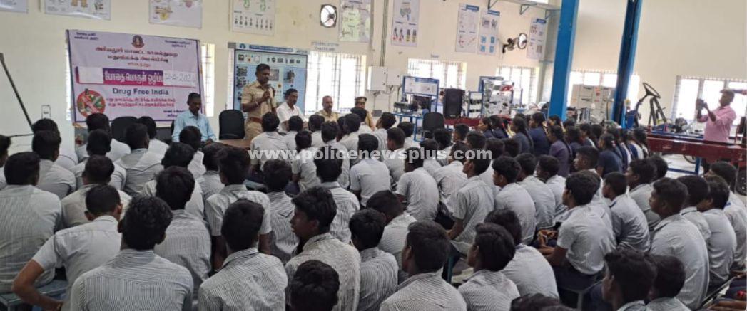 அரியலூர் : திருச்சி மத்திய மண்டல காவல்துறை தலைவர் திரு.க.கார்த்திகேயன் இ.கா.ப., அவர்கள் மற்றும் திருச்சி சரக காவல்துறை துணைத் தலைவர் திரு.M.மனோகர் இ.கா.ப., அவர்களின் வழிகாட்டுதலின்படியும், அரியலூர் மாவட்ட காவல் கண்காணிப்பாளர் திரு.ச.செல்வராஜ் அவர்களின் உத்தரவின்படியும், (12.02.2024)ம் தேதி அரியலூர் அரசு தொழிற்பயிற்சி நிலையத்தில், மாவட்ட மதுவிலக்கு அமலாக்கப்பிரிவு கூடுதல் காவல் கண்காணிப்பாளர் திரு.R.விஜயராகவன் அவர்களின் தலைமையில் போதைப் பொருட்கள் விழிப்புணர்வு நிகழ்ச்சி நடைபெற்றது.
