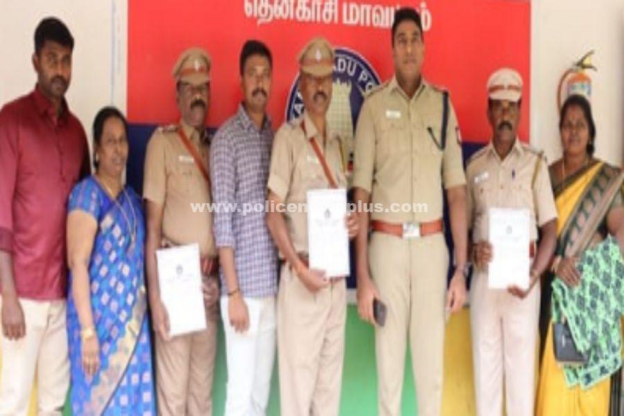 தென்காசி : தென்காசி மாவட்ட காவல்துறையில் சிறப்பாக பணிபுரிந்து பணி மூப்பின் காரணமாக சிறப்பு சார்பு ஆய்வாளர் திரு.சாமுவேல் ஜெயராஜ் மற்றும் விருப்ப ஓய்வில் செல்லும் சார்பு ஆய்வாளர்கள் திரு.கோபால்,திரு.சுப்பிரமணியன் ஆகியோருக்கு மாவட்ட காவல் கண்காணிப்பாளர் திரு.கிருஷ்ணராஜ் IPS அவர்கள் சான்றிதழ் வழங்கி வாழ்த்துக்களை தெரிவித்தார்.
