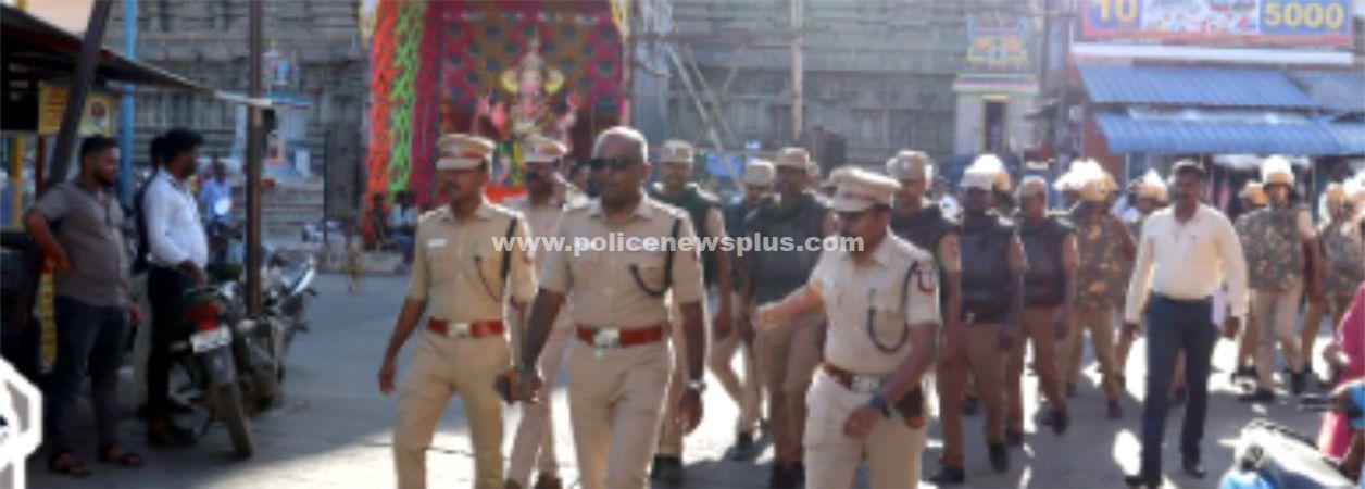 தென்காசி: விநாயகர் சதுர்த்தி விழாவினை பொதுமக்கள் பாதுகாப்புடனும், சட்டம் ஒழுங்கு பிரச்சனை ஏற்படா வண்ணமும் கொண்டாடும் வகையில் தென்காசி மாவட்ட காவல் கண்காணிப்பாளர் திரு.S.அரவிந்த் அவர்களின் தலைமையில் தென்காசி மற்றும் செங்கோட்டையில் காவல்துறையினர் சார்பில் கொடி அணிவகுப்பு நடைபெற்றது. தென்காசி காவல் நிலைய எல்லைக்குட்பட்ட தென்காசி பழைய பேருந்து நிலையத்தில் துவங்கி யானை பாலம் சிக்னல், மேலரத வீதி, வடக்கு ரத வீதி வழியாக காசி விஸ்வநாதர் கோவில், சுவாமி சன்னதி வீதி, ஜெமினி லாலா கார்னர், முத்தாரம்மன் கோவில் கூலக்கடை பஜார் வழியாக மீண்டும் பழைய பேருந்து நிலையத்தில் கொடி அணிவகுப்பு முடிவற்றது.