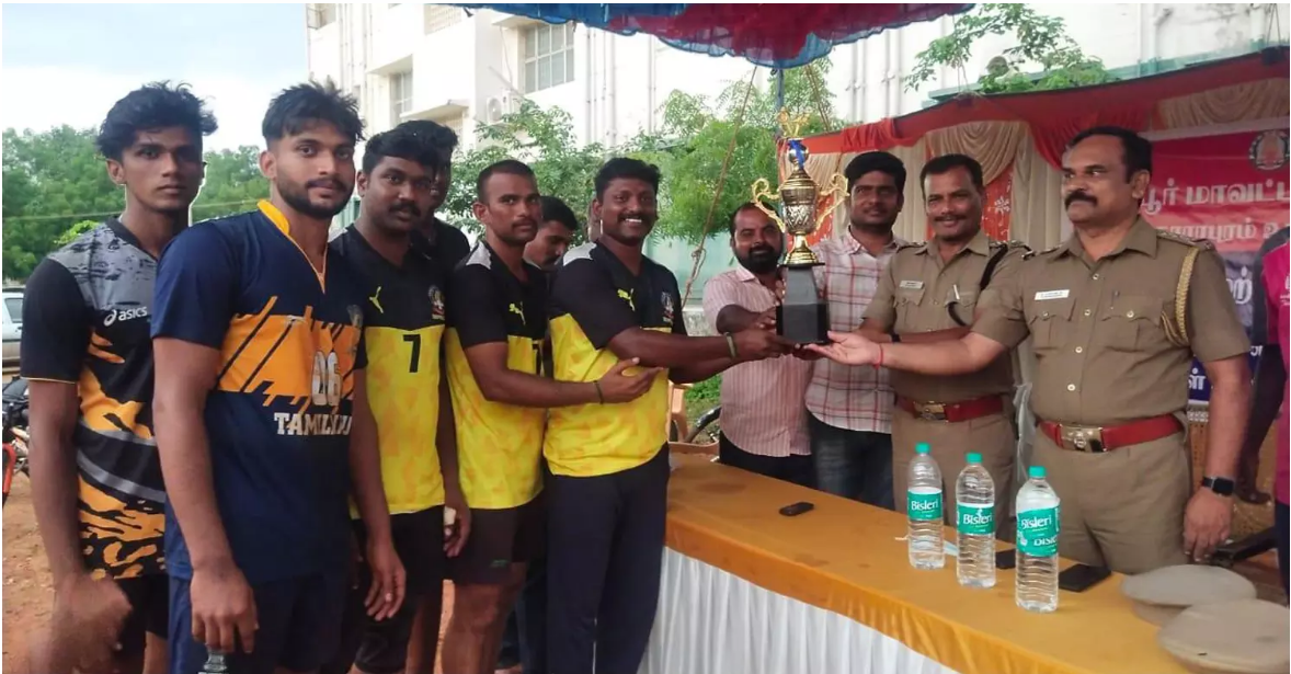 திருப்பூர் : திருப்பூர், தாராபுரம் சரகத்திற்கு உட்பட்ட பகுதியில், காவல்துறையினர், பொதுமக்கள் நல்லுறவு வாலிபால் விளையாட்டு போட்டி நடத்தப்பட்டது. விளையாட்டு போட்டியை தாராபுரம் துணை காவல் சூப்பிரண்டு திரு.தனராசு, வாலிபால் போட்டியை தொடங்கி வைத்தார்.அதில் தாராபுரம், குண்டடம், அலங்கியம், மூலனூர் ஆகிய போலீஸ் நிலையத்திற்கு உட்பட்ட பகுதிகளில், இருந்து பொதுமக்கள் கலந்து கொண்டு வாலிபால் விளையாடினர். போட்டியில் வெற்றி பெற்றவர்களுக்கு தாராபுரம் போலீஸ் துணை சூப்பிரண்டு தனராசு பரிசு வழங்கினார்.இதில் தாராபுரம் காவல் ஆய்வாளர் திரு.மணிகண்டன், காவல் உதவிஆய்வாளர் திரு. கருப்புசாமி, காவல்துறையினர், மற்றும் பொதுமக்கள் என ஏராளமானோர் கலந்து கொண்டனர்.