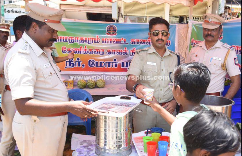 இராமநாதபுரம்: இராமநாதபுரம் பாரதி நகர் பேருந்து நிறுத்தம் அருகே, கோடை வெயிலில் மக்களின் தாகத்தை தீர்க்க இராமநாதபுரம் மாவட்ட காவல்துறை சார்பில் அமைக்கப்பட்ட நீர் மோர் பந்தலை இராமநாதபுரம் மாவட்ட காவல் கண்காணிப்பாளர் திரு.G.சந்தீஷ்.IPS., அவர்கள் திறந்து வைத்து பொதுமக்களுக்கு நீர் மோர் வழங்கினார்கள்.