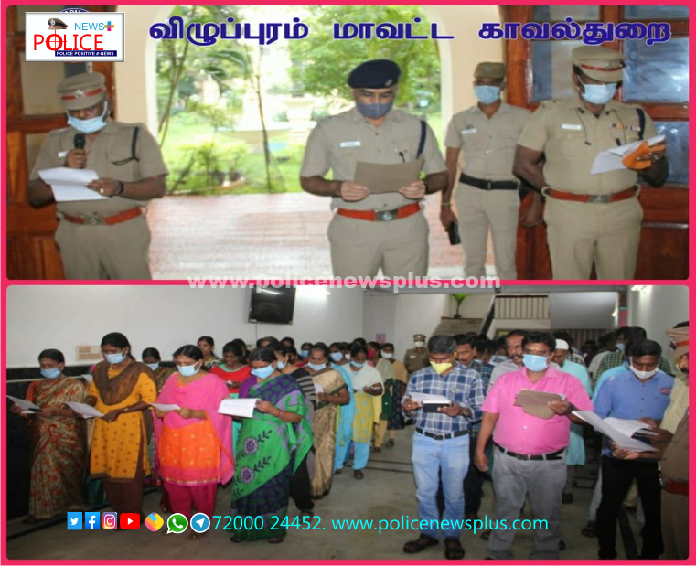 விழுப்புரம்: விழுப்புரம் மாவட்ட காவல்துறை இந்திய அரசியலமைப்பு ஏற்றுக்கொள்ளப்பட்ட தினத்தை முன்னிட்டு இன்று 26.11.2021 விழுப்புரம் மாவட்ட காவல் அலுவலகத்தில் மாவட்ட காவல் கண்காணிப்பாளர் திரு.ஸ்ரீநாதா I.P.S அவர்கள் தலைமையில் காவல் அதிகாரிகள் ஆளிநர்கள் மற்றும் அமைச்சுப் பணியாளர்கள் அனைவரும் ஒன்றிணைந்து உறுதிமொழி எடுத்துக்கொண்டனர்.