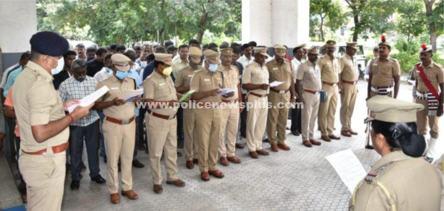சேலம் : (17/ 09/2022), சேலம் மாவட்ட காவல் அலுவலகத்தில், காவல் கண்காணிப்பாளர் திரு. அபிநவ் இ.கா.ப, அவர்கள் தலைமையில், பிறப்பொக்கும் எல்லா உயிர்க்கும் என்ற அன்பு நெறியையும், யாதும் ஊரே யாவரும் கேளிர் என்ற பண்பு நெறியையும், எனது வாழ்வில் வழிமுறைகளாக கடைபிடிப்பேன். சுயமரியாதை ஆளுமை திறனும் பகுத்தறிவு பார்வையும் கொண்டவையாக என்னுடைய செயல்பாடுகள் அமையும் சமத்துவம் சகோதரத்துவம் சமதர்மம் ஆகிய கொள்கைகளுக்காக, என்னை ஒப்படைத்துக் கொள்வேன்.