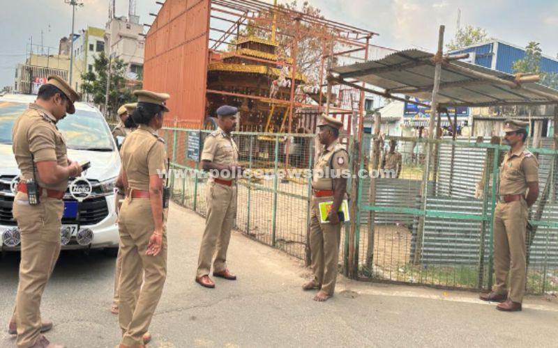 கோவை : கோவை வருகின்ற (01/03/2023) கோவை மாநகர் டவுன் ஹாலில் உள்ள கோனியம்மன் கோவில் திருவிழாநடைபெறவுள்ளது. இதை முன்னிட்டு கோவை மாநகர காவல்துறை ஆணையர் திரு. வி. பாலகிருஷ்ணன் இ.கா.ப அவர்கள் (20.02.2023) கோனியம்மன் கோவில் தேர் செல்லும் ஊர்வலப் பாதைகளுக்கு சென்று எவ்வித அசம்பாவித சம்பவங்களும் நிகழாவண்ணம் மேற்கொள்ளப்பட வேண்டிய பாதுகாப்பு ஏற்பாடுகள் குறித்து ஆய்வு செய்தார். தேரை பார்வையிட்டு அங்கு பணியிலிருந்த காவலர்கள் விழிப்புடன் காவல் பணிமேற்கொள்ள அறிவுரை வழங்கினார். மேலூம் தேர் விழாவின்போது குற்றச் சம்பவங்கள் நடைபெறாவண்ணம் பாதுகாப்பு மேற்கொள்வது குறித்தும் பொதுமக்களும் பக்தர்களும் எவ்வித பாதிப்பும் இல்லாமல் வந்து செல்வதற்க்கு போக்குவரத்து நெரிசல் ஏற்படாவண்ணம் பொக்குவரத்து ஏற்பாடுகள் மேற்கொள்ளவும் அறிவுரை வழங்கினார்.
