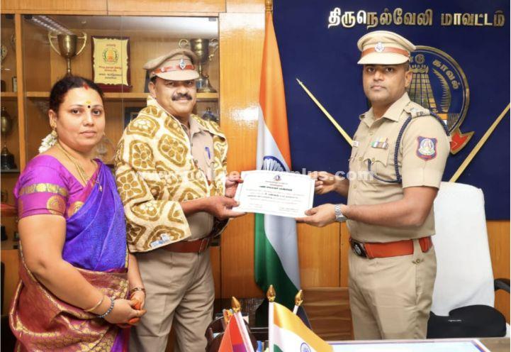 திருநெல்வேலி: தமிழக காவல்துறையில் 36 வருடங்கள் சிறப்பான முறையில் பணிபுரிந்து ஓய்வு பெறும் மதுவிலக்கு பிரிவு உதவி ஆய்வாளர், கண்ணனை நேரில் அழைத்து சிறப்பான முறையில் பணியாற்றியதை பாராட்டி திருநெல்வேலி மாவட்ட காவல் கண்காணிப்பாளர் N. சிலம்பரசன். இ.கா.ப, பொன்னாடை அணிவித்து, பணி பாராட்டு சான்றிதழ் வழங்கி வாழ்த்துகளை தெரிவித்தார்.