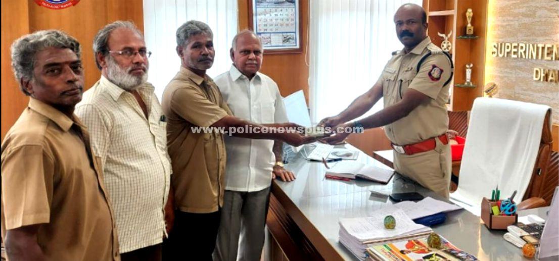தர்மபுரி: தர்மபுரி நகர பேருந்து நிலையத்தில் கீழே கிடந்த பர்ஸ் ஒன்றினை சோபனா ஆட்டோ ஸ்டாண்டை சேர்ந்த திரு.குனேந்திரன் என்பவர் தர்மபுரி மாவட்ட காவல் கண்காணிப்பாளர் திரு.ஸ்டீபன் ஜேசுபாதம் அவர்களிடம் ஒப்படைத்தார். அதில் பணம் ரூபாய் 4800 மற்றும் ATM card, Cridit card, Aadhar card,Pan கார்டு போன்றவை அந்த பர்ஸ் -ல் இருந்தது அதனைப் பெற்று உரிய நபரான பாலக்கோடு பகுதியைச் சேர்ந்த திரு.பிரவீன் என்பவரை நேரில் அழைத்து மாவட்ட காவல் அலுவலகத்தில் ஒப்படைக்கப்பட்டது.