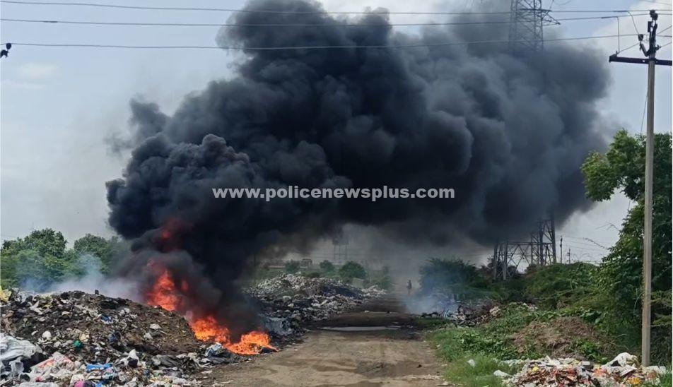 திருவள்ளூர்: திருவள்ளூர் மாவட்டம் பொன்னேரி அடுத்த தச்சூரில் சென்னை – கொல்கத்தா தேசிய நெடுஞ்சாலை ஓரத்தில் டாஸ்மாக் கடைக்கு செல்லும் குறுக்கு சாலையில் குப்பை, கழிவுகள் கொட்டப்பட்டுள்ளன. நண்பகல் உச்சி வெயில் நேரத்தில் இந்த குப்பை கழிவுகளுக்கு மர்ம நபர்கள் சிலர் தீ வைத்துள்ளனர். இதனால் குப்பை கழிவுகளில் தீ மளமளவென பரவி கொழுந்து விட்டு எரிந்து வானுயர கருப்புகை சூழ்ந்து காணப்படுகிறது. கருப்புகையுடன் தீ கொழுந்து விட்டு எரிந்து வருவதால் அவ்வழியே செல்லும் வாகன ஓட்டிகள் அவதிக்கு ஆளாகினர். கரும்பு புகையுடன் தீ கொழுந்து விட்டு எரிவதால் சாலையில் செல்ல முடியாத சூழல் ஏற்படுவதாகவும், கண் எரிச்சல் மூச்சுத் திணறல் உள்ளிட்ட பல்வேறு பாதிப்புகள் ஏற்படுவதாக வாகன ஓட்டிகள் புகார் தெரிவித்தனர்.