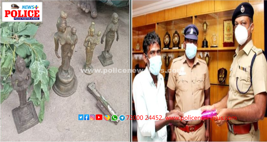 இதன்படி நாங்குநேரி பகுதியில் பூ வியாபாரம் செய்து வரும் நாங்குநேரி, காமராஜர் தெருவை சேர்ந்த திரு.ஐயப்பன், என்பவர் 31.01.2022 அன்று காலை நாங்குநேரி பேருந்து நிலையத்தில் அருகே உள்ள கழிவறையில் கிடந்த சாக்கு பையை எடுத்து பார்த்துள்ளார். சாக்கு பையை திறந்து பார்த்த போது அதில் 4 சிலைகள், பழங்கால கத்தி ஒன்று இருப்பதை கண்டதும் உடனடியாக நாங்குநேரி காவல் நிலையத்தில் வந்து ஒப்படைத்தார்.