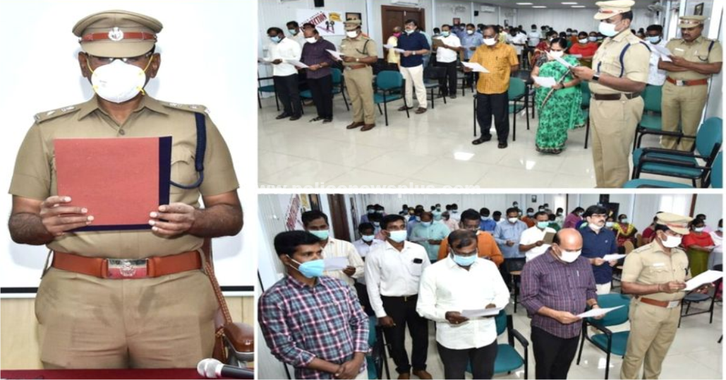 காஞ்சி: காஞ்சிபுரம் மாவட்டம் காவல் அலுவலகத்தில் இன்று (09.02.22) மாவட்ட காவல் கண்காணிப்பாளர் Dr.திரு.M.சுதாகர் அவர்கள், கூடுதல் காவல் கண்காணிப்பாளர் (தலைமையகம்) திரு.வினோத் சாந்தாராம், அமைச்சு பணியாளர்கள் மற்றும் காவல் ஆளினர்கள் இணைந்து கொத்தடிமை தொழிலாளர் முறை ஒழிப்பு உறுதி மொழியை பின்வருமாறு எடுத்துக் கொண்டனர்.