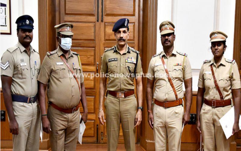 இச்சம்பவத்தில் துணிச்சலாக செயல்பட்டு கடத்தலில் ஈடுபட்டவர்களைக் கைது செய்த உதவி ஆய்வாளர்கள் திரு.பாஸ்கரன் மற்றும் ராஜகுமாரி, சிறப்பு உதவி ஆய்வாளர் திரு.வெங்கடேசன் மற்றும் காவலர் திரு. பிரேம் குமார் ஆகியோரை தமிழ்நாடு காவல்துறை தலைமை இயக்குனர்,படைத்தலைவர் முனைவர் திரு. செ. சைலேந்திர பாபு, IPS., அவர்கள் டிஜிபி அலுவலகத்திற்கு நேரில் அழைத்து சான்றிதழ் மற்றும் பண வெகுமதி அளித்துப் பாராட்டினார்கள்.