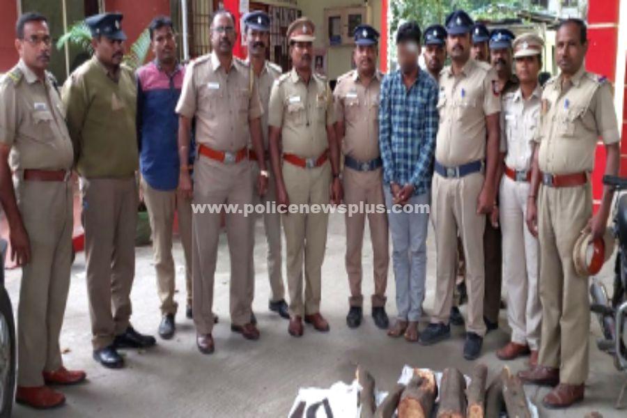வேலூர் : வேலூர் மாவட்ட காவல் கண்காணிப்பாளர் திரு. ராஜேஸ் கண்ணன் இ.கா.ப., அவர்களுக்கு சந்தன மரக்கட்டையை கடத்துவதாக வந்த ரகசிய தகவலின் பெயரில் தெற்கு காவல் நிலைய ஆய்வாளர் திரு. ரஜினிகாந்த், அவர்களின் தலைமையிலான போலீசார் ஊரிஸ் கல்லூரி அருகில் சோதனை செய்தபோது சட்ட விரோதமாக சந்தன கட்டையை காட்பாடியிலிருந்து ஆரணிக்கு இருசக்கர வாகனத்தில் கடத்த முயன்ற குற்றவாளி ராஜசேகர் (28), என்பவரை மடக்கி பிடித்து குற்றவாளி மற்றும் சுமார் 20 கிலோ சந்தனக்கட்டை வனத்துறையிடம் மேல் நடவடிக்கை ஒப்படைத்தனர். இந்த சிறப்பான செயலைப் பாராட்டி வடக்கு மண்டல தலைவர் திரு கண்ணன், இ.கா.ப., அவர்கள் காவல் அதிகாரிகள் மற்றும் ஆளிநர்களுக்கு பாராட்டு சான்றிதழ்கள் வழங்கப்பட்டது.
