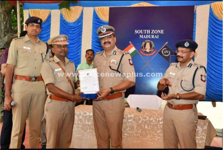 சிவகங்கை: சிவகங்கை மாவட்டம் தேவகோட்டை தாலுகா காவல் நிலைய சார்பு ஆய்வாளர் மரியாதைக்குரிய மலைச்சாமிக்கு அவர்களுக்கு தென்மண்டல காவல்துறை தலைவர் உயர்திரு கண்ணன் இ.கா.ப பாராட்டி சான்றிதழ் வழங்கினார். உடன் ராமநாதபுரம் சரக காவல்துறை துணைத் தலைவர் உயர்திரு.துரை இ.கா.ப சிவகங்கை மாவட்ட காவல் கண்காணிப்பாளர் உயர்திரு. அரவிந்த் இ.கா.ப ஆகியோர் சேர்ந்து பாராட்டினார்கள்.