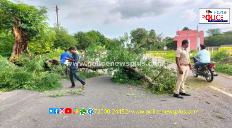 திருவண்ணாமலை: திருவண்ணாமலை மாவட்டம், வெறையூர் காவல் நிலைய எல்லைக்குட்பட்ட T-கல்லேரி கூட்டுச்சாலையின் நடுவே முறிந்து விழுந்த மரத்தினை வெறையூர் காவல் நிலைய காவலர்கள் 1)தலைமைக் காவலர் திரு.ரத்தினகிரி மற்றும் இரண்டாம் நிலைக் காவலர் திரு.இளையசூரியன் ஆகியோர் விரைந்து சென்று மரத்தினை அகற்றி போக்குவரத்தை சீர் செய்தனர். இச்செயலுக்கு திருவண்ணாமலை மாவட்ட காவல் கண்காணிப்பாளர் திரு.அ.பவன் குமார்,இ.கா.ப., அவர்கள் பாராட்டு தெரிவித்தார்.