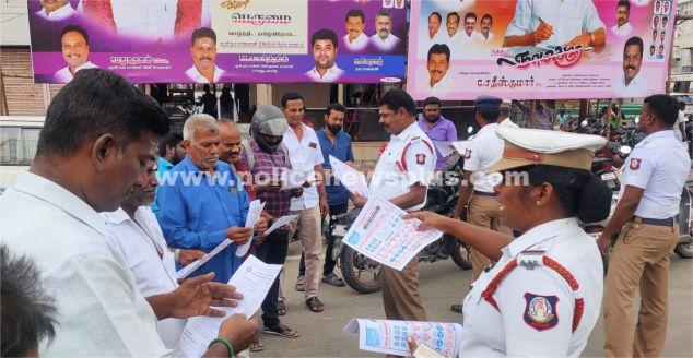 திண்டுக்கல் : திண்டுக்கல் மாவட்டம், பழநி பஸ் நிலையம் அருகில் போக்குவரத்து இன்ஸ்பெக்டர் மகேந்திரன், சப் இன்ஸ்பெக்டர் கவிதா தலைமையிலான போக்குவரத்து போலீசார் வாகன ஓட்டிகளிடம் சாலை பாதுகாப்பு விழிப்புணர்வு ஏற்படுத்தினர்.