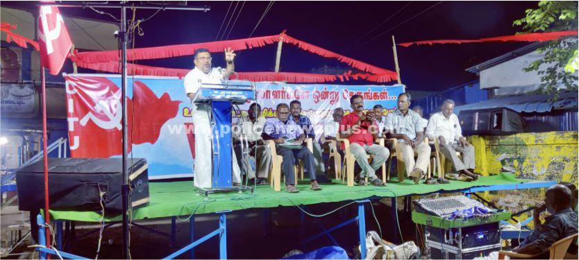 சிவகங்கை: சிஐடியு சார்பில் காரைக்குடி ஐந்து விலக்கு அருகில் 139 வது மே தின பொதுக்கூட்டம் (01.5.25) மாலை 06.00 மணி முதல் 08.30 மணி வரை சிவகங்கை மாவட்ட சிஐடியு தலைவர் தோழர் ஆர் வீரய்யா தலைமையில் நடைபெற்றது.சிஐடியு ஆட்டோ தொழிலாளர் சங்கத்தின் காரைக்குடி நகர நிர்வாகிகள் தோழர்கள் ஏ. சுப்பிரமணியன், ஏ. வெங்கிட்டு, முருகேசன் ஆகியோர் முன்னிலை வகித்தனர். மாவட்ட செயலாளர் தோழர் ஏ. சேதுராமன், மாவட்ட பொருளாளர் தோழர் எம். தட்சிணாமூர்த்தி, மாவட்டத் துணைத் தலைவர்கள் தோழர்கள் கே ஆர். அழகர்சாமி, எஸ். உமாநாத் ஆகியோர் உரையாற்றினார்கள். திண்டுக்கல் தொகுதி பாராளுமன்ற உறுப்பினர் தோழர் ஆர். சச்சிதானந்தம் அவர்கள் சிறப்புரையாற்றி பொதுக்கூட்டத்தை நிறைவு செய்தார்.