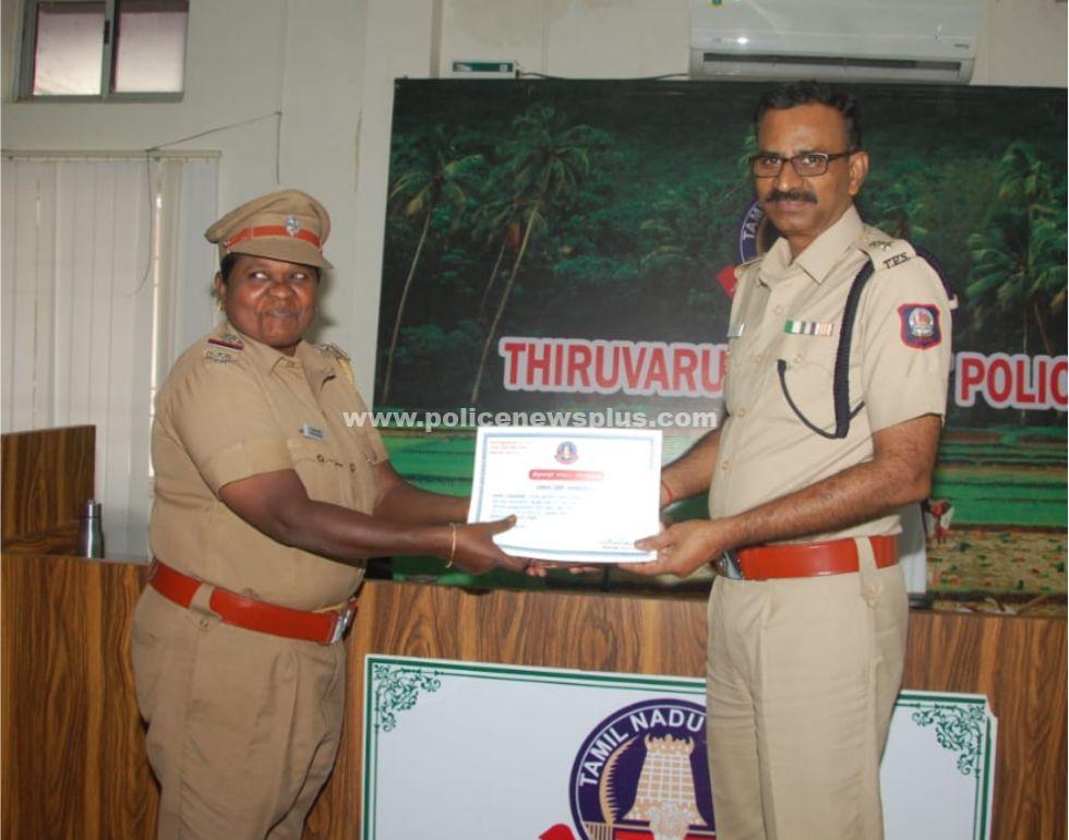 1).திரு.P.தமிழ்மாறன், காவல் துணை கண்காணிப்பாளர், நன்னிலம் உட்கோட்டம். 2).திரு.G.ராஜ், காவல் ஆய்வாளர், குடவாசல், காவல் நிலையம், 3).செல்வி,C.சந்தானமேரி, காவல் ஆய்வாளர், வலங்கைமான், காவல் நிலையம், 4).திரு.D.சரவணன், காவல் உதவி ஆய்வாளர், நகர காவல் நிலையம், திருவாரூர், 5).திரு.M.முருகேசன், காவல் உதவி ஆய்வாளர், அரித்துவாரமங்கலம், காவல் நிலையம், 6).திரு.D.கிருஷ்ணகுமார், த.கா.229, மதுவிலக்கு அமல் பிரிவு, திருவாரூர். 7).திரு.R.ஆனந்த், மு.நி.கா.393, தாலுகா காவல் நிலையம், திருவாரூர், .திரு.P.பிரவீன், காவலர்.621, ஆயுதப்படை, 9).திரு.A.சாதாம் உசேன், காவலர்.1671, ஆயுதப்படை, திருவாரூர். அரித்துவாரமங்கலம் காவல் நிலைய சரகத்தில் சட்டவிரோதமாக மணல் திருட்டில் ஈடுபட்ட நபர்களை பிடித்து வாகனத்துடன் காவல் நிலையத்தில் ஒப்படைத்து சட்டபூர்வ நடவடிக்கை மேற்கொள்ள உதவியாக இருந்த அரித்துவாரமங்கலம் காவல் நிலைய தனிப்பரிவு காவலர். திரு.N.அறிவழகன். தம்பிக்கோட்டை சோதனை சாவடியில் சிறப்பாக பணியாற்றி பாண்டி மது பாட்டில்களை கடத்தி வந்த நபர்களை பிடித்து வாகனத்துடன் மது பாட்டில்களை பறிமுதல் செய்த எடையூர் காவல் நிலைய சிறப்பு உதவி ஆய்வார் திரு.P.மணிமுத்து. தொடர்ச்சியாக இருசக்கர வாகனத் திருட்டு, உண்டியல் திருட்டில் ஈடுபட்டு வந்த நபர்களை பிடித்து உரிய சட்டபூர்வ நடவடிக்கை மேற்கொண்டர்கள்.