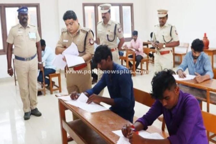தூத்துக்குடி : தமிழ்நாடு சீருடை பணியாளர் தேர்வாணையம் அறிவித்துள்ள 2022ம் ஆண்டிற்கான காவலர் எழுத்து தேர்வு (27.11.2022) தூத்துக்குடி மாவட்டத்தில் பி.எம்.சி மெட்ரிகுலேசன் பள்ளி, கிரேஸ் பொறியியல் கல்லூரி, காமராஜ் கல்லூரி, புனித பிரான்ஸிஸ் சேவியர் மேல்நிலை பள்ளி, புனித தாமஸ் மேல்நிலை பள்ளி, வ.உ.சி கல்லூரி, காரப்பேட்டை நாடார் மேல்நிலைப் பள்ளி மற்றும் சுப்பையா வித்யாலயா பெண்கள் மேல்நிலைப் பள்ளி ஆகிய 8 தேர்வெழுதும் மையங்களில் நடைபெற்று வருகின்றது. இதனையடுத்து மேற்படி தேர்வு எழுதும் மையங்களுக்கு (27.11.2022) சென்னை ரயில்வே காவல்துறை துணைத் தலைவர் திரு. அபிஷேக் தீக்ஷித் இ.கா.ப அவர்கள் மற்றும் மாவட்ட காவல் கண்காணிப்பாளர் டாக்டர் திரு. எல். பாலாஜி சரவணன் அவர்கள் ஆகியோர் நேரில் சென்று ஆய்வு செய்தனர். இந்த ஆய்வின்போது தூத்துக்குடி தலைமையிடத்து காவல்துறை கூடுதல் காவல் கண்காணிப்பாளர் திரு. கார்த்திகேயன் உட்பட காவல்துறையினர் உடனிருந்தனர்.