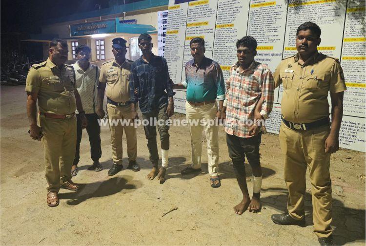 மேலும் இவ்வழக்கில் தொடர்புடைய குற்றவாளிகள் தேடப்பட்டு வந்த நிலையில், நேற்று மானாமதுரை காவல் ஆய்வாளர் திரு.முத்துக்கணேஷ் மற்றும் சார்பு ஆய்வாளர் திரு.பூபதிராஜா ஆகியோர் தலைமையில் பூக்குளம் விளக்கு அருகே வாகனத்தணிக்கை செய்து கொண்டிருந்த போது, அங்கு சந்தேகப்படும்படியாக TN 48 BB 2853 என்ற இருசக்கர வாகனத்தில் வந்த இரண்டு நபர்கள் காவல்துறையினரை பார்த்ததும் தனது இருசக்கர வாகனத்தை திருப்பி தப்பிச்செல்ல முயன்ற போது அருகில் இருந்த பள்ளத்தில் விழுந்ததில் இருவரின் இடது கால்களிலும் முறிவு ஏற்பட்டு மனாமதுரை அரசு மருத்துவமனையில் சிகிச்சைக்கு அனுமதிக்கப்பட்டனர். பிறகு விசாரணையில், முருகப் பாஞ்சான் கிராமத்தைச்சேர்ந்த மாணிக்கவேல் மகன் வேல்முருகன்(21). மற்றும் ராஜேந்திரன் மகன் சக்திபிரியன்(20). ஆகிய இருவரும் மேற்படி சம்பவத்தில் ஈடுப்பட்டுள்ளது. கண்டறியப்பட்டு இருவரும் (30.12.2023)ம் தேதி கைது செய்யப்பட்டு இராமநாதபுரம் மாவட்ட சிறையிலடைக்கப்பட்டனர். மேலும் இது போன்ற குற்ற சம்பவங்களில் ஈடுபடுவர்கள் மீது சட்டப்படியான கடும் நடவடிக்கை எடுக்கப்படும் என சிவகங்கை மாவட்ட காவல் கண்காணிப்பாளர் திரு.பா.க.அர்விந்த் இ.கா.ப., அவர்கள் எச்சரித்துள்ளார்.