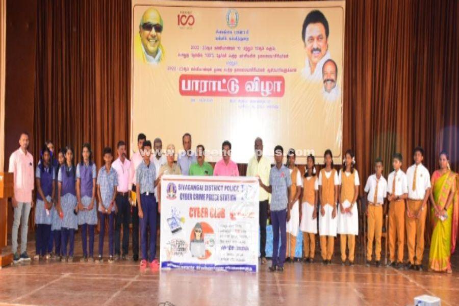 தமிழ்நாடு சைபர் கிரைம் காவல்துறை கூடுதல் இயக்குனர் திரு.சஞ்சய்குமார். இ.கா.ப. அவர்களின் உத்தரவுபடியும், காவல் கண்காணிப்பாளர் சைபர்கிரைம் பிரிவு திருமதி.தேவராணி இ.கா.ப, அவர்கள் மற்றும் சிவகங்கை மாவட்டம் காவல் கண்காணிப்பாளர் திரு.செல்வராஜ். அவர்களின் வழிகாட்டுதலின் படியும் மற்றும் சைபர் கிரைம் கூடுதல் காவல் கண்காணிப்பாளர் திரு.நமசிவாயம் அவர்களின் அறிவுறுத்தலின் படியும் சிவகங்கை மாவட்ட சைபர் கிரைம் காவல் துறையினர் சார்பாக சிவகங்கை மாவட்ட சைபர் கிரைம் ஆய்வாளர் திருமதி.தேவி மற்றும் திரு.சதீஷ்குமார், சார்பாக சிவகங்கை மாவட்டம் காரைக்குடியில் உள்ள அழகப்பா பல்கலைக்கழக பழனியப்பா கூட்டரங்கில் சிவகங்கை மாவட்ட முதன்மை கல்வி அலுவலர் அவர்களின் தலைமையில் நடந்த நிகழ்வில் சிவகங்கை மாவட்ட பள்ளிகளில் சைபர் கிளப் ஆரம்பிக்கப்பட்டது. இக்குழு மூலம் ஒவ்வொரு பள்ளிக்கும் குறைந்தபட்சம் 10 மாணவர்களை உறுப்பினர்களாக சேர்த்து, அந்தக் குழுவின் தலைவர்களாக செயல்படும் பள்ளி ஆசிரியர்கள் அனைவரும் இணைந்து மாவட்ட அளவில் சைபர் கிரைம் காவல் நிலைய அலுவலர்களுடன் whatsapp குழு ஒன்று உருவாக்கப்பட்டு அதில் பகிரப்படும் சைபர் கிரைம் விழிப்புணர்வு சார்ந்த செய்திகள் மாணவர்களுக்கு ஆசிரியர்கள் மூலமாக சென்றடைந்து சைபர் கிரைம் குற்றங்கள் பெருமளவு தடுக்கப்படும். மேலும் சைபர் கிரைம் Help Line No.1930 , மற்றும் www.cybercrime.gov.in குறித்து விளக்கமளித்து அவர்களுக்கு சைபர் கிரைம் சம்பந்தமான அறிவுரைகள் வழங்கப்பட்டன.