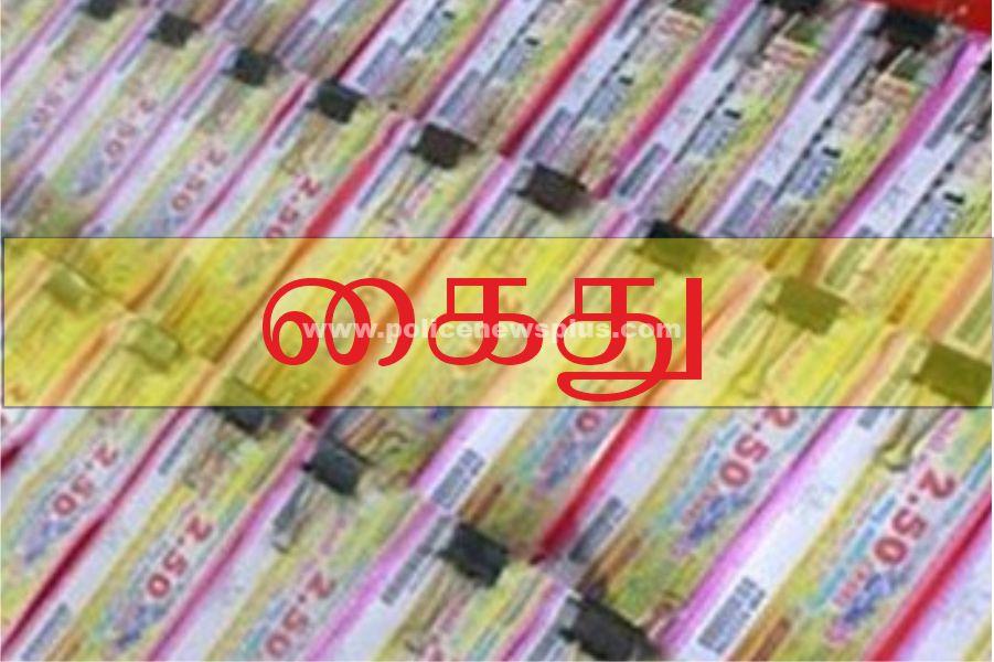திருப்பத்தூர் : திருப்பத்தூர் ஜோலார்பேட்டை போலீஸ் இன்ஸ்பெக்டர் திருமதி.மங்கையற்கரசி, சப்- இன்ஸ்பெக்டர் திரு.காதர்கான், மற்றும் போலீசார் ஜோலார்பேட்டை பகுதியில் ரோந்து சென்றனர். அப்போது ஏலகிரி மலை அடிவாரம் பொன்னேரி டீக்கடை அருகே சந்தேகத்தின் பேரில் சுற்றி திரிந்தவரை போலீசார் மடக்கி பிடித்து விசாரணை செய்தனர். விசாரணையில் அவர் பெரிய பொன்னேரி பகுதியைச் சேர்ந்த முத்துக்குமார் (42),என்பதும், கேரளா மாநில லாட்டரி சீட்டுகள் விற்பனை செய்ததும் தெரியவந்தது. அதைத்தொடர்ந்து அவரை போலீசார் கைது செய்தனர். மேலும் அவரிடமிருந்து 360 லாட்டரி சீட்டுகள் மற்றும் மோட்டார் சைக்கிள், செல் போன், ரொக்க பணம் ஆகியவற்றை பறிமுதல் செய்தனர்.
