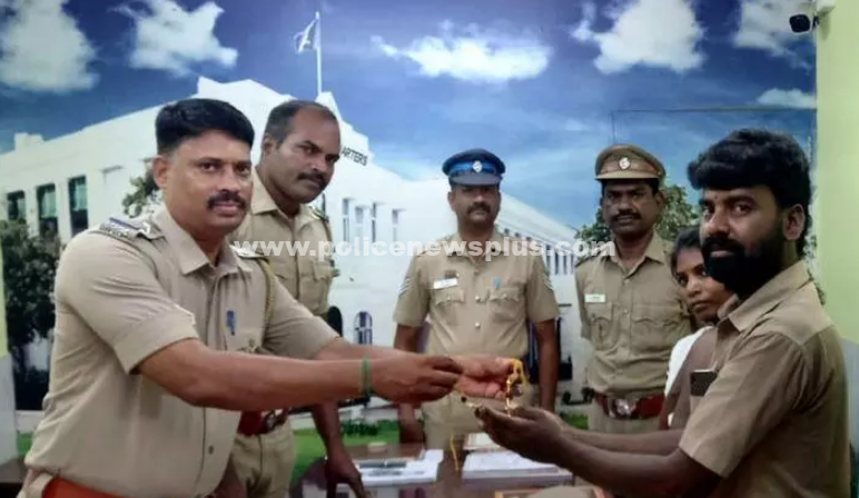 இதுகுறித்து மன்னார்குடிகாவல்துறையினர், நடத்திய விசாரணையில், இந்த சங்கிலி சுந்தரக்கோட்டையை சேர்ந்த அருள்செல்வம் மனைவி நந்தினிக்கு சொந்தமானது என தெரியவந்தது. பின்னர் இருவரையும் போலீஸ்நிலையத்துக்கு வரவழைத்து அவர்களிடம் சங்கிலி ஒப்படைக்கப்பட்டது. சாலையில் கிடந்த சங்கிலியை போலீஸ் நிலையத்தில் ஒப்படைத்த தொழிலாளி பிரசன்னாவை ஆய்வாளர் (பொறுப்பு) திரு. ராஜேஷ்கண்ணா, மற்றும் காவல்துறையினர், பாராட்டினர்.