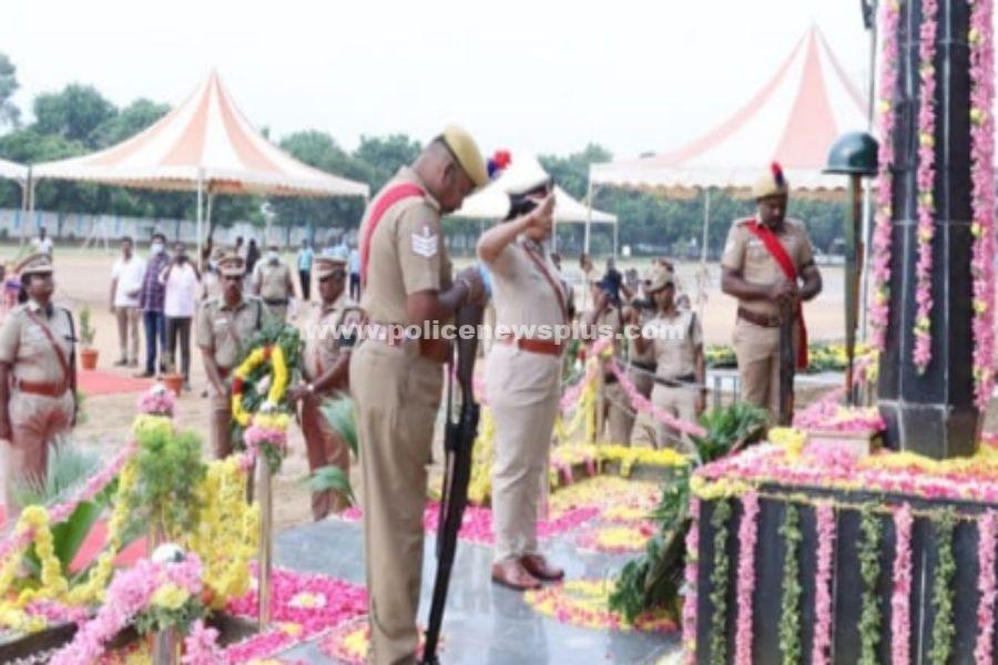 தஞ்சாவூர் : தஞ்சை மாவட்ட காவல்துறை, பணியின் போது வீரமரணம் அடைந்த காவலர்களுக்கு மரியாதை செலுத்தும் விதமாக இன்று அக்டோபர் 21 காவலர் வீரவணக்க நாள் தஞ்சாவூர் மாவட்ட ஆயுதப்படை மைதானத்தில் அனுசரிக்கப்பட்டது. தஞ்சை மாவட்ட காவல்கண்காணிப்பாளர்திருமதி.ரவளி ப்ரியா கந்தபுனேனி.இ.கா.ப அவர்கள் மலர் வளையம் வைத்து மரியாதை செலுத்தினார்.