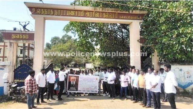 தமிழ்நாட்டில் மாணவர்கள் நலனுக்கு எதிராக உள்ள யுஜிசி வரைவு அறிக்கையை உடனே திரும்பப் பெற வேண்டும், துணைவேந்தர் நியமனம் தொடர்பான அறிவிப்பை ரத்து செய்திட வேண்டும், பொது பட்டியலில் உள்ள கல்வியை மாநில பட்டியலுக்கு மாற்றிட வேண்டும், நிதிநிலை அறிக்கையில் குறைக்கப்பட்ட மாநில கல்வி நிதியை ஒதுக்கிட வேண்டும், மாநில உரிமைகளில் ஒன்றிய அரசு தலையிடக்கூடாது, கல்வி உதவித் தொகையை உயர்த்தி வழங்கிட வேண்டும் உள்ளிட்ட பல்வேறு கோரிக்கைகளை வலியுறுத்தி மாணவர்கள் முழக்கங்களை எழுப்பி ஆர்ப்பாட்டத்தில் ஈடுபட்டனர். யுஜிசி வரைவு அறிக்கையை திரும்பப் பெறும் வரை மாணவர்கள் போராட்டம் தொடரும் எனவும் ஆர்ப்பாட்டத்தில் தெரிவிக்கப்பட்டது.