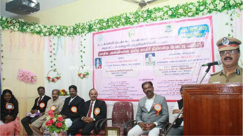 திருநெல்வேலி : தமிழ்நாடு சட்டக் கல்வி இயக்ககம், திருநெல்வேலி அரசு சட்டக் கல்லூரி ஆகியவற்றின் சார்பில் நடைபெறும் மாநில அளவிலான தமிழ் மாதிரி நீதிமன்ற போட்டியை (13.03.2025) அன்று தொடங்கி வைத்து திருநெல்வேலி சரக காவல்துறை துணைத் தலைவர் முனைவர் பா.மூா்த்தி, இ.கா.ப., பேசியதாவது, காவல் துறையில் பணியாற்றும் நான், ஒரு சட்டம் பயின்ற மாணவன் என்பதில் மிகுந்த மகிழ்ச்சியடைகிறேன். எனது கல்வியை முடிக்கும் காலத்தில் 1 மதிப்பெண்ணிற்காக ஒரு வழக்கு தொடர்ந்தேன். அந்த வழக்கு இன்று முன்மாதிரி வழக்காக எடுத்துரைக்கப்பட்டு வருகிறது. இளம் வழக்கறிஞர்கள் தங்களது வாத திறமையை வளர்க்க தேவையான முயற்சிகளை எடுக்க வேண்டும். புள்ளி விவரங்கள் மட்டுமே வழக்கின் வெற்றிக்கு கூடுதல் பலம் சேர்க்கும்.