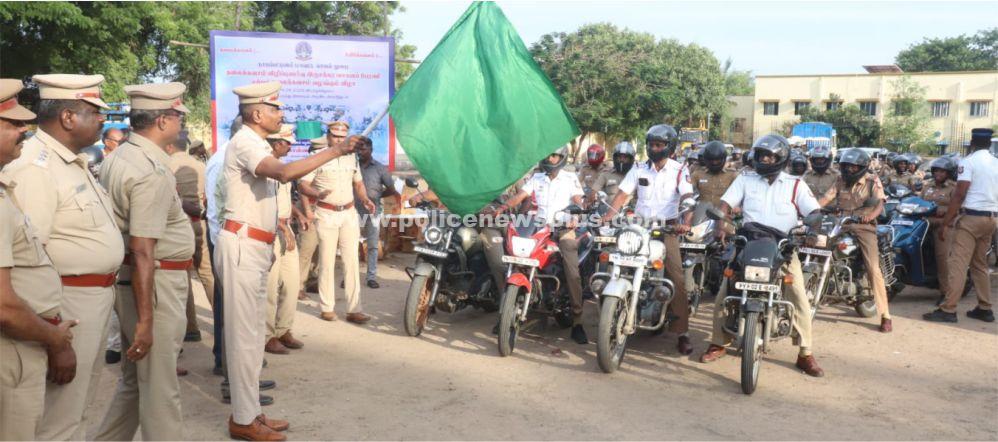 நாகப்பட்டினம்: நாகப்பட்டினம் மாவட்ட காவல்துறை சார்பில் இரு சக்கர வாகனத்தில் தலைக்கவசம் அணிவது குறித்து விழிப்புணர்வு பேரணி நடைபெற்றது. நாகை அவுரித்திடலில் துவங்கிய பேரணியை நாகப்பட்டினம் மாவட்ட காவல் கண்காணிப்பாளர் திரு சு.செல்வக்குமார் இ .கா.ப அவர்கள் கொடியசைத்து துவங்கி வைத்தார். பேரணி பப்ளிக் ஆபீஸ் ரோடு, தம்பித்துரை பூங்கா, புதிய பேருந்து நிலையம், நாகை அரசு தலைமை மருத்துவமனை, அண்ணா சிலை வழியாக மீண்டும் அவர் திடல் வந்தடைந்தது.