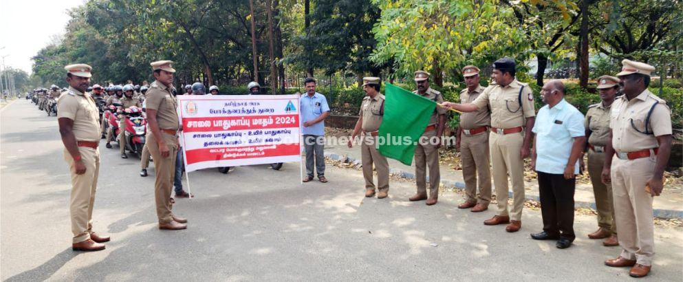 திண்டுக்கல்: திண்டுக்கல் மாவட்ட ஆட்சியர் அலுவலக வளாகத்தில் இருந்து சாலை பாதுகாப்பு மாதத்தை முன்னிட்டு தலைக்கவசம் அணிவதன் அவசியம் குறித்த விழிப்புணர்வு இரு சக்கர வாகன பேரணியை மாவட்ட காவல்துறை கண்காணிப்பாளர் கொடியசைத்து துவக்கி வைத்தார்.. இந்த நிகழ்ச்சியில் வட்டார போக்குவரத்து அலுவலர் சுரேஷ், மோட்டார் வாகன ஆய்வாளர் இளங்கோ மற்றும் காவல்துறையினர், இருசக்கர வாகன விற்பனை பிரதிநிதிகள் கலந்து கொண்டனர்.