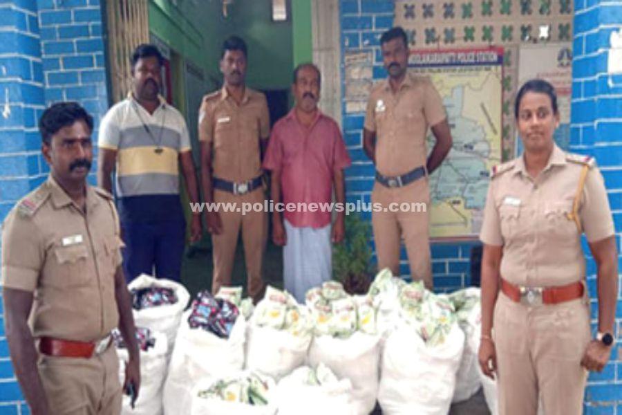 திருநெல்வேலி : மூலக்கரைப்பட்டி காவல் நிலைய சரகத்திற்குட்பட்ட நேரு தெருவை சேர்ந்த ஜோசப் (50), என்பவர் மூலக்கரைப்பட்டி பஜாரில் மளிகை கடை நடத்தி வருகிறார். மேற்படி குற்றவாளி ஜோசப் தடைசெய்யப்பட்ட புகையிலை பொருட்களை விற்பனைக்கு வைத்திருப்பதாக போலீசாருக்கு ரகசிய தகவல் கிடைத்தது. தகவலின் பேரில் நாங்குநேரி வட்ட காவல் ஆய்வாளர் திருமதி.செல்வி, அவர்கள் மூலக்கரைப்பட்டி காவல்நிலைய உதவி ஆய்வாளர் திரு.ஆழ்வார், அவர்கள் தலைமையிலான போலீசார் குற்றவாளியின் கடை மற்றும் வீட்டை சோதனை செய்ததில் 209 கிலோ புகையிலை பொருட்களை விற்பனைக்காக பதுக்கி வைத்திருந்தது தெரியவந்தது. மேற்படி போலீசார் குற்றவாளி ஜோசப்பை கைது செய்து 209 கிலோ புகையிலை பொருட்களை பறிமுதல் செய்தனர்.
