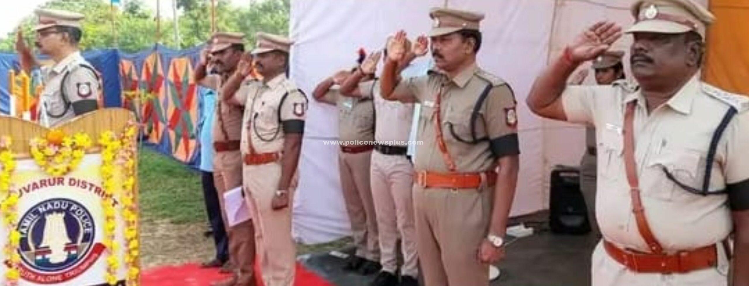 திருவாரூர் : திருவாரூர் மாவட்ட ஆயுதப்படைமைதானத்தில் துப்பாக்கி குண்டுகள் முழங்க காவலர் தினம் அனுசரிக்கப்பட்டது கொட்டும் மழையிலும் பனியிலும் கொடிய வெயிலிலும் கடும் பணியிலும் சட்டம் ஒழுங்கு மற்றும் இயற்கை பேரிடர்கள் பாதிப்பின் போதும் தன் குடும்பத்தையும் மறந்து தன் தேசத்திற்காக பணிபுரிந்து உயர்நீத்த காவல்துறை காவலர்களுக்கு தலை வணங்கும் விதமாக ஒவ்வொரு வருடமும் அக்டோபர் 21ஆம் தேதி தேசிய நீத்தார் நினைவு தினம் அனுசரிக்கப்பட்டு வருகிறது அது சமயம் இன்று 21 10 2023 திருவாரூர் மாவட்ட ஆயுதப்படை மைதானத்தில் அமைந்துள்ள நினைவுத் தூணில் காவல்துறையில் பணிபுரிந்து பணியில் இருக்கும் போது நாட்டுக்காக தன் உயிரை துறந்த தியாகச் செம்மல்களுக்கு நினைவு தினம் அனுசரிக்கப்பட்டது இந்நிகழ்ச்சியில் திருவாரூர் மாவட்ட காவல் கண்காணிப்பாளர் திரு எஸ். ஜெயக்குமார் Msc அவர்கள் கூடுதல் காவல் கண்காணிப்பாளர் T. ஈஸ்வரன் அவர்கள் மற்றும் திருவாரூர் மாவட்டத்தில் பணிபுரியும் துணை காவல் கண்காணிப்பாளர்கள் தனிப்பிரிவு ஆய்வாளர் p. ராஜா அவர்கள் ஆகியோர் முன்னிலையில் காவல்துறை முறைப்படி துப்பாக்கி குண்டுகள் முழங்க மலர் வளையம் வைத்து நினைவு தினம் அனுசரிக்கப்பட்டது.