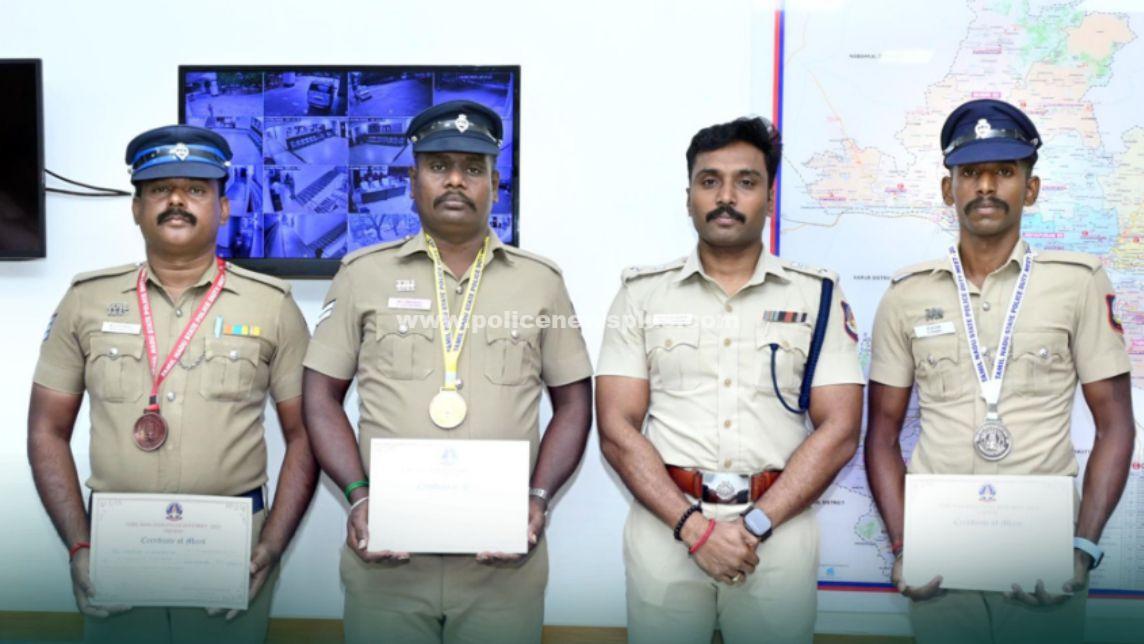 திருச்சி: (30.07.2025) முதல் (04.08.2025) வரை சென்னை ஊனமாஞ்சேரியில் நடைபெற்ற 69-ஆம் ஆண்டு காவல்துறை திறனாய்வு போட்டியில் திருச்சி மாவட்ட காவல்துறை சார்பாக கலந்து கொண்டு பதக்கங்கள் வென்ற காவலர்கள் திருச்சி மாவட்ட காவல் கண்காணிப்பாளர் திரு.செ.செல்வநாகரத்தினம், இ.கா.ப., அவர்களிடம் பாராட்டு பெற்றனர்.
