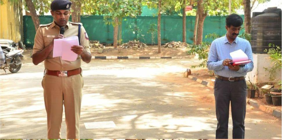 திண்டுக்கல் : திண்டுக்கல் மாவட்ட காவல் அலுவலகத்தில் இன்று (30.01.2024) மாவட்ட காவல் கண்காணிப்பாளர் மருத்துவர் அ.பிரதீப், இ.கா.ப, அவர்கள் தலைமையில் “தீண்டாமையை ஒழிக்க மேற்கொள்ளும் உறுதிமொழி” ஏற்பு நிகழ்ச்சி நடைபெற்றது. இந்நிகழ்ச்சியில் காவல் அலுவலக அமைச்சு பணியாளர்கள் மற்றும் காவலர்கள் கலந்து கொண்டனர். “தீண்டாமையை ஒழிக்க மேற்கொள்ளும் உறுதிமொழி” இந்திய அரசியலமைப்பின்பால் இடைவிடாத, உளமார்ந்த பற்றுள்ள இந்தியக் குடிமகன் / குடிமகள் ஆகிய நான், நமது அரசியலமைப்பின்படி தீண்டாமை ஒழிக்கப்பட்டுவிட்டது என்பதை அறிவேன். தீண்டாமையை அடிப்படையாகக் கொண்டு, எவர் மீதும் தெரிந்தோ, தெரியாமலோ சமூக வேற்றுமையை மனம், வாக்கு, செயல், என்ற எந்த வகையிலும் கடைப்பிடிக்கமாட்டேன். என்று இதனால் உளமார உறுதியளிக்கிறேன். அரசியலமைப்பின் அடிப்படைக் கருத்திற்கிணங்க, சமய வேறுபாடற்ற சுதந்திர சமுதாயத்தை உருவாக்குவதில் நேர்மையுடனும், உண்மையுடனும் பணியாற்றுவது எனது கடமையாகும். என்பதையும் உணர்வேன். இந்திய அரசியலமைப்பின்பால் முழுப்பற்றிற்கு இது என்றென்றும் எடுத்துக்காட்டாக விளங்குமென்றும் இதனால் உளமார உறுதியளிக்கிறேன்.