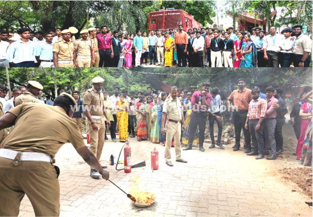 மேலும் அவசர காலத்தில் தீயை எவ்வாறு அணைப்பது? தீயில் சிக்கியவர்களை எவ்வாறு காப்பாற்றுவது? தீ விபத்தில் உடைமைகளையும் உயிர்களையும் எவ்வாறு மீட்பது? போன்ற செயல் விளக்கம் செய்து காண்பிக்கப்பட்டது. தொடர்ந்து, தீ பாதுகாப்பு தொடர்பாக மாணவிகள் எழுப்பிய கேள்விகளுக்கு அவர் பதிலளித்தார். மேலும் தீ விபத்து ஏற்படும்போது தீயை எவ்வாறு அணைக்க வேண்டும் என்பது குறித்த செயல்முறை விளக்கங்களை தீயணைப்பு துறையினர் செய்து காண்பித்து விழிப்புணர்வு ஏற்படுத்தினர். இதில் 100-க்கும் மேற்பட்ட மாணவிகள் கலந்து