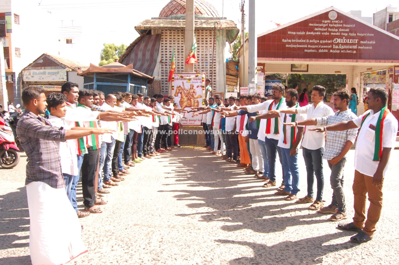 மதுரை : சுதந்திர போராட்ட வீரர் தீரன் சின்னமலை 218வது நினைவு நாளையொட்டி மதுரை மாவட்டம் அலங்காநல்லூர் பேருந்து நிலையத்தில் உள்ள நினைவு தூணில் வைக்கப்பட்டிருந்த அவரது உருவப்படத்திற்கு தமிழ்நாடு கொங்கு இளைஞர் பேரவை சார்பில் மாவட்ட தலைவர் பார்த்திபன் தலைமையில் மாவட்ட செயலாளர் தயாளன், இளைஞரணி செயலாளர் பாலகிருஷ்ணன் ஆகியோர் முன்னிலையில் நிர்வாகிகள் மாலை அணிவித்து வீரவணக்க அஞ்சலி செலுத்தினர்.
