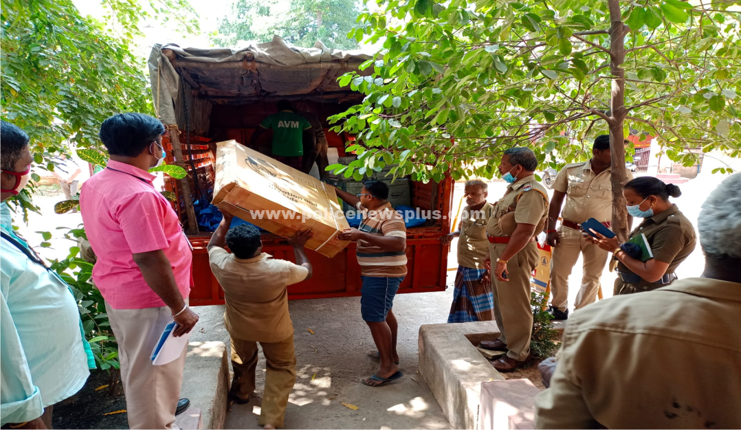விருதுநகர்: விருதுநகர் மாவட்டம், இராஜபாளையம் 42 வார்டுகளுக்கும் நாளை நகர்ப்புற உள்ளாட்சி தேர்தல் நடைபெறுவதை ஒட்டி, 128 பூத்துக்கு அமைக்கப்பட்டு 11 மொபைல் வாகனங்கள் மூலம் 128 ஈவிஎம் மிஷின்கள் அனைத்துக் கட்சியினர் முன்னிலையில் தேர்தல் நடத்தும் அதிகாரி திருமதி.சுந்தராம்பாள் மேற்பார்வையில் மிஷின்கள் அனைத்தும் ஒவ்வொரு வாக்கு மையங்களுக்கும் பாதுகாப்புடன் அனுப்பி வைக்கப்பட்டன..