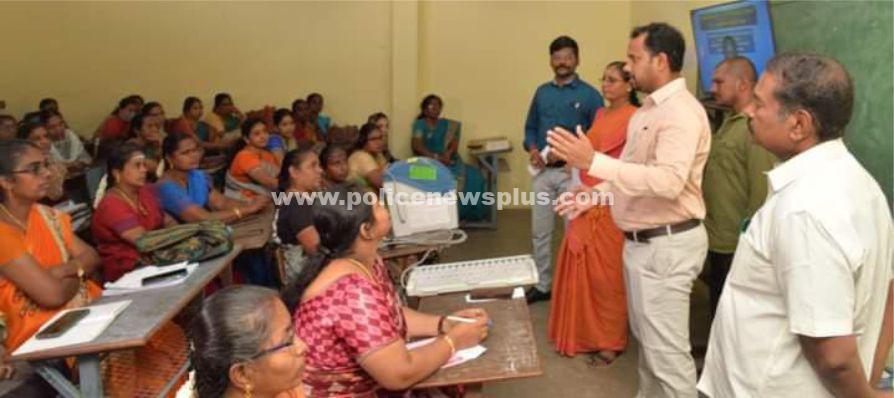 தென்காசி : மாவட்ட தேர்தல் நடத்தும் அலுவலர் திரு. ஏ.கே.கமல் கிஷோர்.,இ.ஆ.ப , தென்காசி எம் கே வி கே மெட்ரிக் மேல்நிலைப்பள்ளி, கொடிக்குறிச்சி ஸ்ரீராம் நல்லமணி யாதவா கல்வியியல் கல்லூரி, ஆகிய இடங்களில் தேர்தல் பணி புரியும் வாக்குப்பதிவு அலுவலர்களுக்கு நடைபெறும் மூன்றாம் கட்ட பயிற்சி வகுப்புகளை பார்வையிட்டு ஆலோசனை மற்றும் பயிற்சி வழங்கினார்.