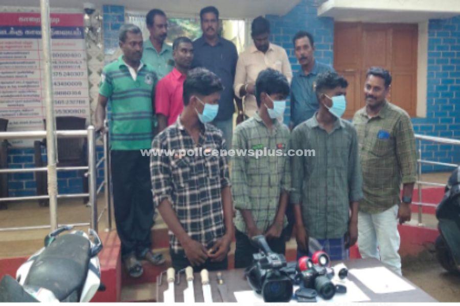 A.S.P திரு. ஸ்டாலின் IPS தலைமையிலான குற்றப்பிரிவு காவல்துறையினர் கைது செய்து அவர்களிடம் இருந்து நான்கு வாள் 17.25 கிராம் தங்க நகை ஒரு இருசக்கர வாகனம் வீடியோ மற்றும் போட்டோ கேமராக்கள் சிசிடிவி கேமராக்கள் ஸ்பீக்கர் ,ஹார்ட் டிஸ்க். போன்றவை பறிமுதல் செய்து சிறையில் அடைத்தனர்.