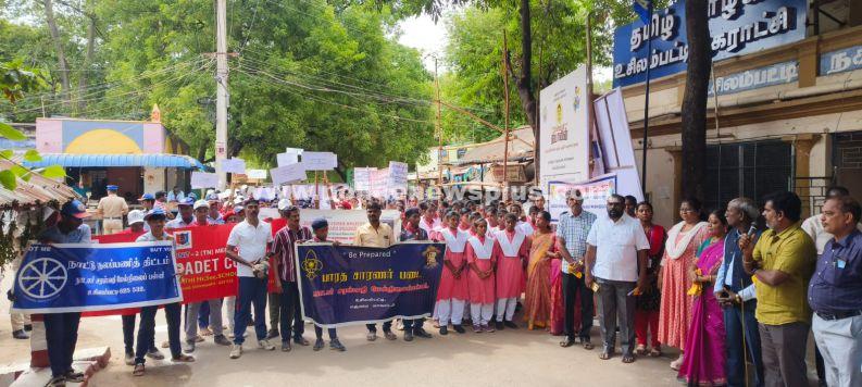 மதுரை : மதுரை மாவட்டம், உசிலம்பட்டி நகராட்சி நிர்வாகம் சார்பில் பிளாஸ்டிக் ஒழிப்பு குறித்து நாடார் சரஸ்வதி மேல்நிலைப்பள்ளி மாணவர்கள், மற்றும் அன்னை செவிலியர் கல்லூரி மாணவிகள் பங்கேற்ற விழிப்புணர்வு பேரணி நடைபெற்றது. இந்த பேரணியை, நகராட்சி ஆணையாளர் இளவரசன் முன்னிலையில், நகராட்சி பொறுப்பு நகர்மன்ற தலைவர் தேன்மொழி கொடியசைத்து தொடங்கி வைத்தார். இந்த பேரணியானது, நகராட்சி அலுவலகத்திலிருந்து தொடங்கி, முருகள் கோவில் தெரு, தேனிரோடு, தேவர்சிலை ரவுன்டானா உள்ளிட்ட முக்கிய வீதிகளின் வழியாக சென்று பொதுமக்களிடையே பிளாஸ்டிக் ஒழிப்பு குறித்து விழிப்புணர்வு ஏற்படுத்தினர். மேலும், பிளாஸ்டிக் பொருட்கள், கேரிபைகள், டீகப்புக்கள் உள்ளிட்ட பிளாஸ்டிக் பொருட்களினால் ஏற்படும் தீமைகள் குறித்து விழிப்புணர்வு ஏற்படுத்தினர். அதனைத்